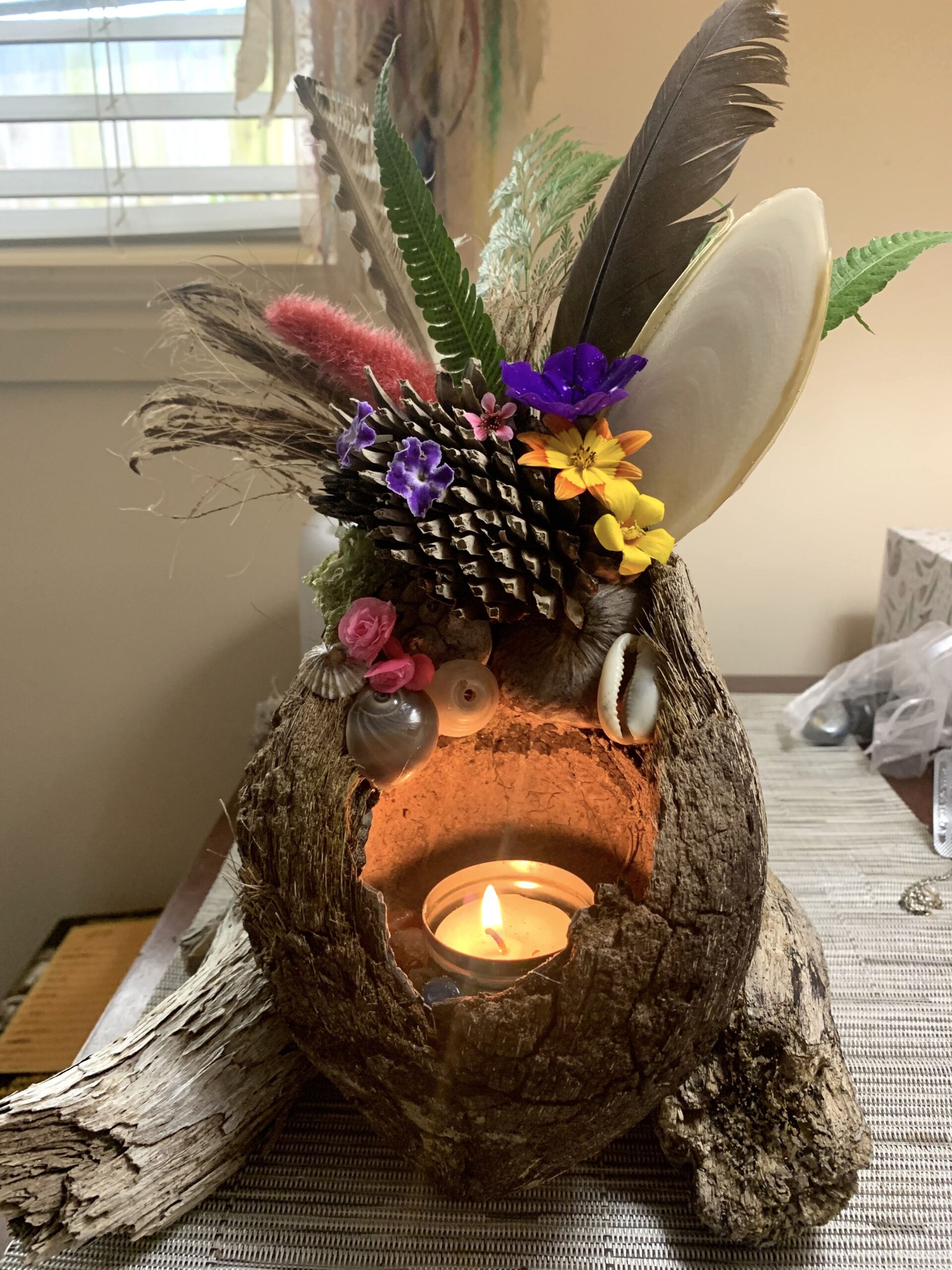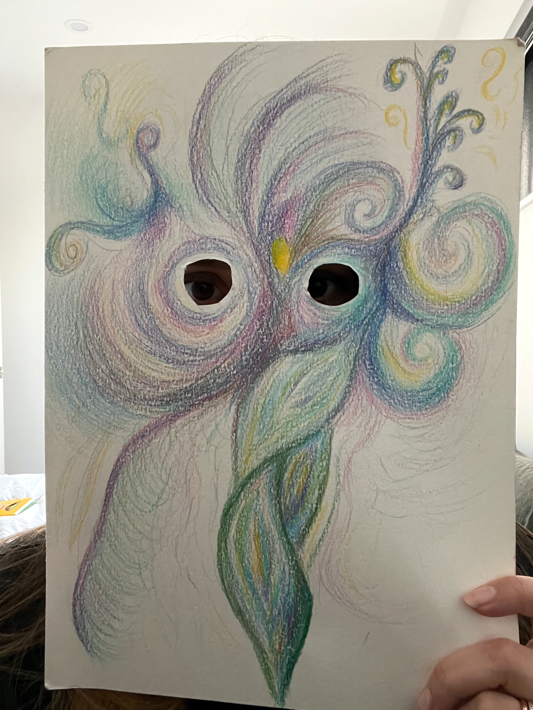 We brought honour through ceremony and ritual by making beautifully crafted masks of their ultimate Spirit Magician facilitator self. The light, joy and power that shines through these masks is profound.